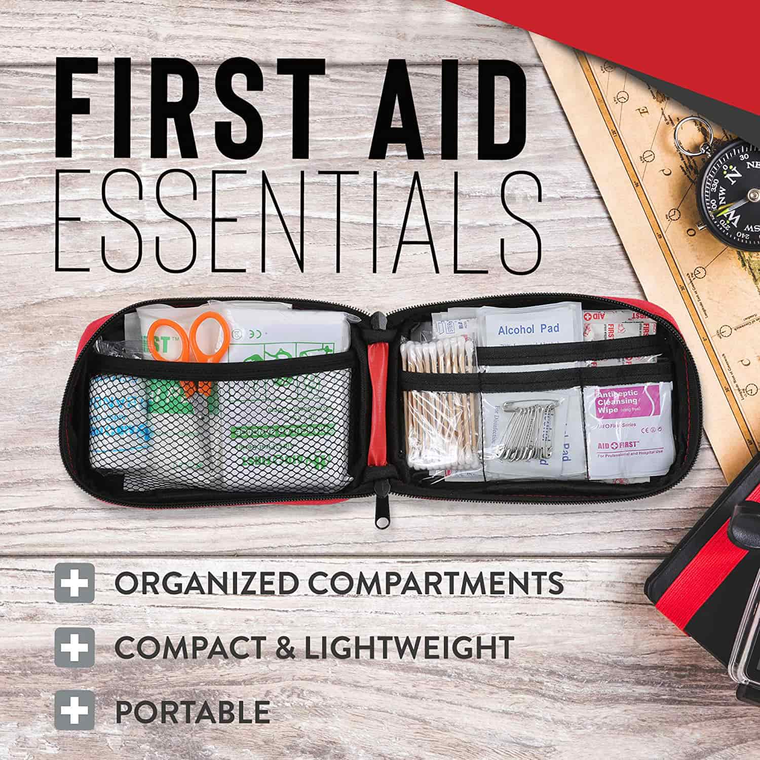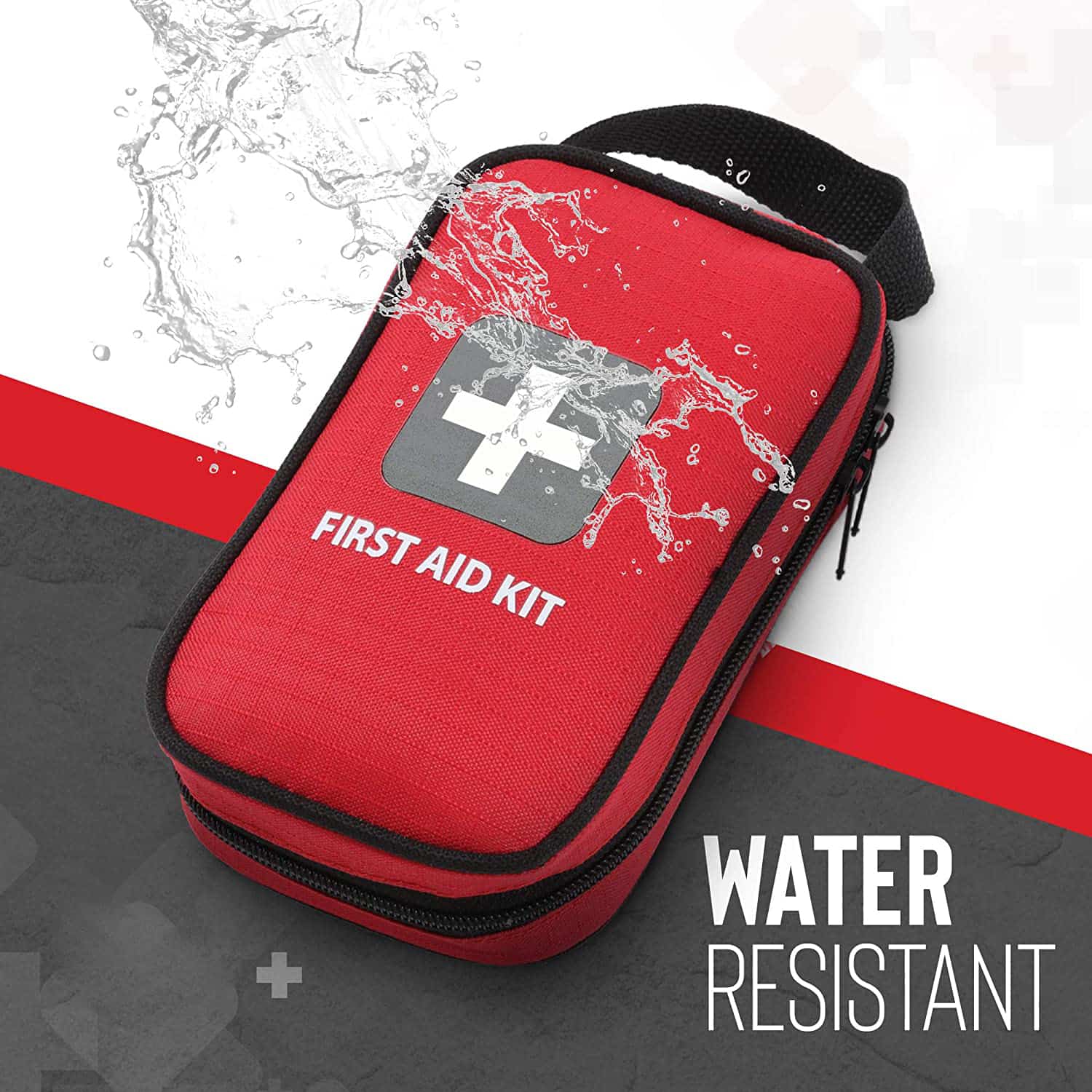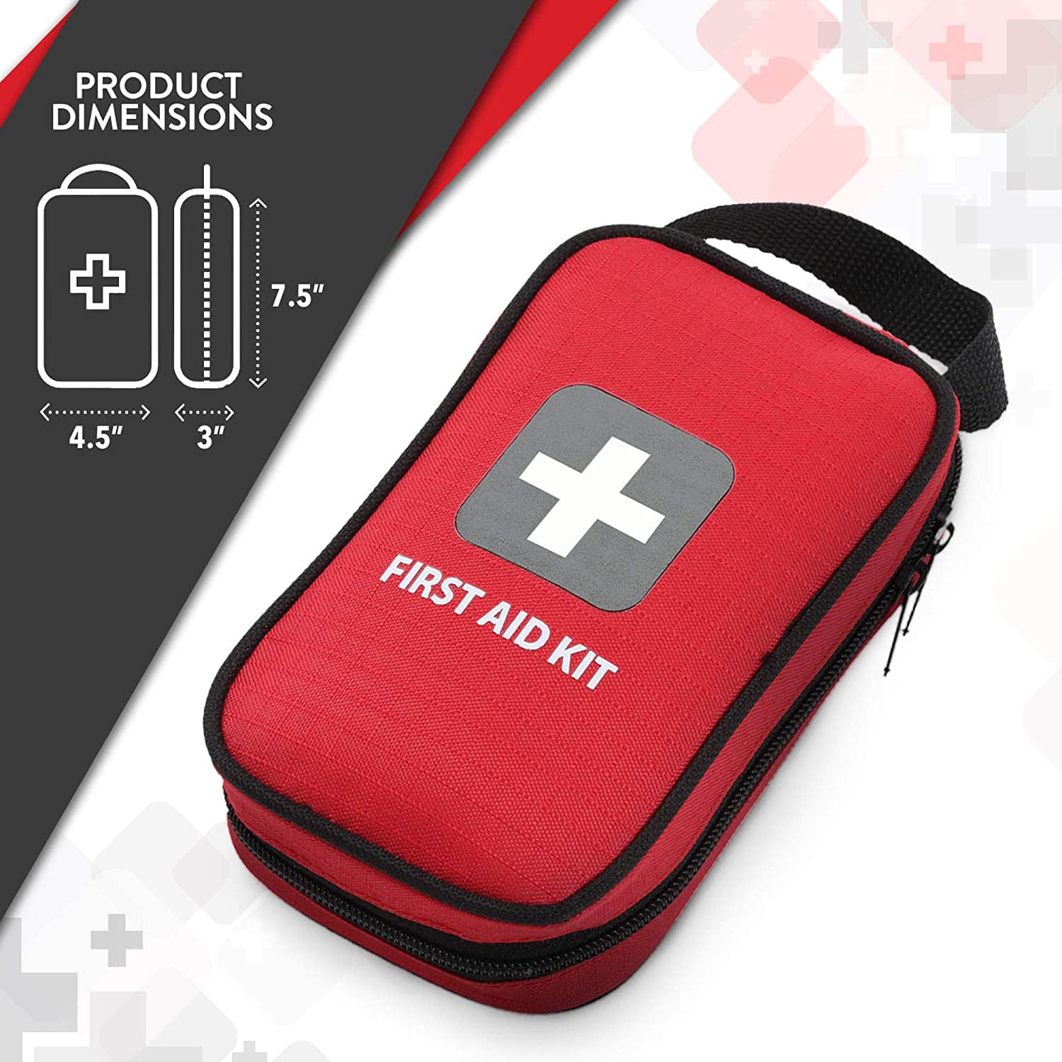 Rip-stop nylonezko eta binilozko ehun iraunkorrez egina. Arina, trinkoa eta, hala ere, bizitzako ustekabeko gertakarietarako behar duzun guztia gordetzen du. Barruko poltsiko zabalek edukia txukun gordetzen dute erabilera artean. Gurutze-logo islatzailea eta gorria. Lehen sorospenen botikak 7,5 hazbeteko luze x 4,5 hazbeteko zabal x 3,0 hazbeteko lodiera ditu. Guztiz irekitzen denean kitak 15,0 hazbeteko luzera du. Gutxi gorabehera 0,3 lb pisatzen du.
